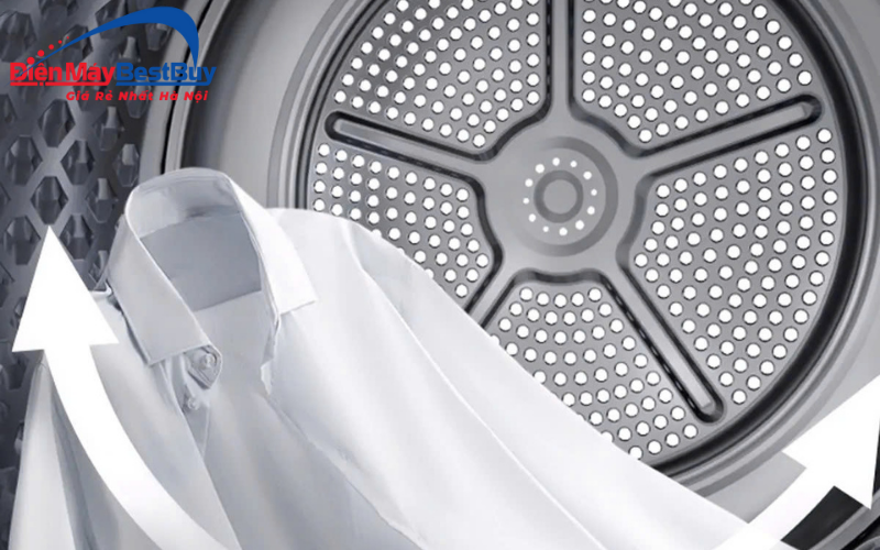 Khi chu trình sấy hoàn tất, lồng sấy tiếp tục xoay nhẹ trong một khoảng thời gian để quần áo không bị dồn cục và gấp nếp. Nhờ chuyển động nhẹ nhàng, quần áo tơi hơn, mềm hơn và giảm nhăn rõ rệt. Với những loại đồ cần phẳng nhẹ để mặc hàng ngày như áo thun, đồ trẻ em hoặc quần short, bạn có thể lấy ra mặc ngay mà không cần là ủi - tiết kiệm đáng kể thời gian và công sức.
