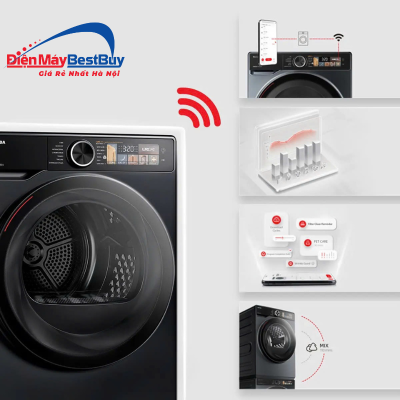 Nhằm mang đến sự tiện lợi tối đa cho người dùng, máy sấy còn tích hợp nhiều tính năng hữu ích như: điều khiển từ xa thông qua ứng dụng TSmartLife, sấy yên tĩnh, hẹn giờ hoàn tất, âm thanh báo hoàn tất, đèn chiếu sáng lồng sấy,...