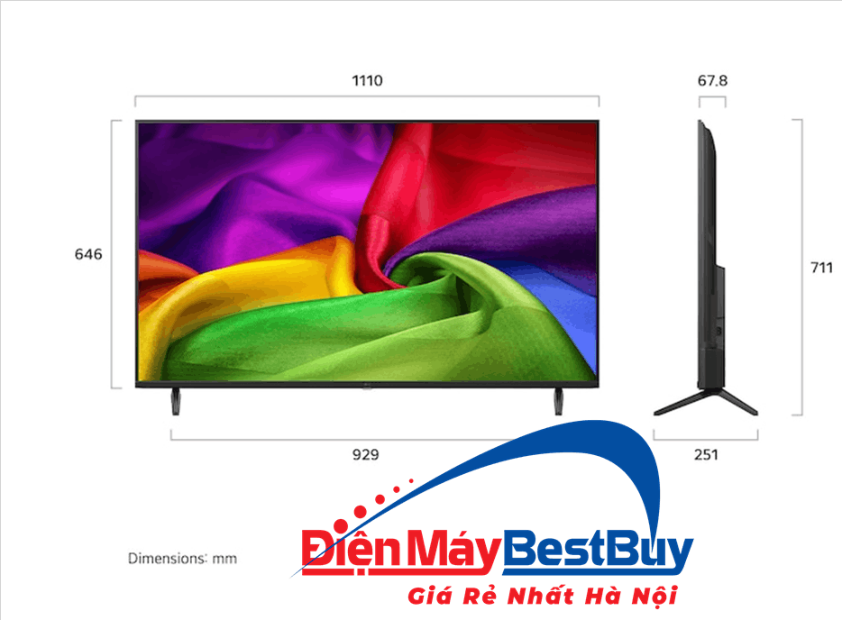 Kích thước có chân đế: Dài 1110 mm - Rộng 711 mm - Cao 251 mm