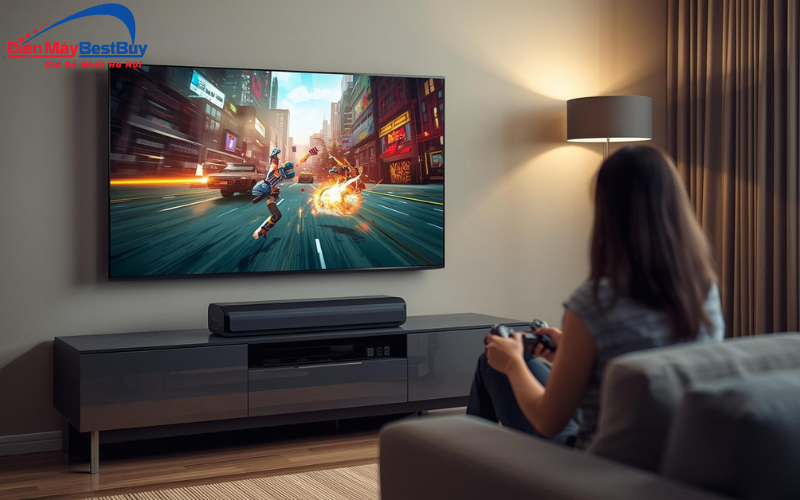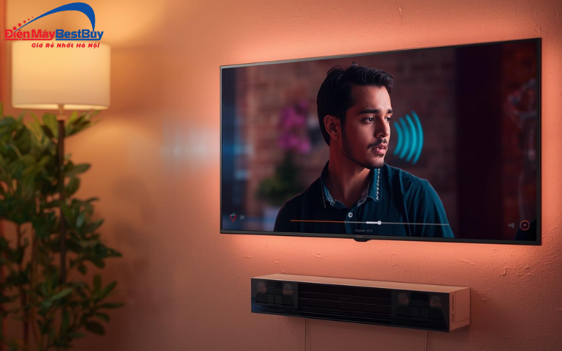 Về âm thanh, sản phẩm tích hợp công nghệ Dolby Atmos, mang đến trải nghiệm âm thanh vòm đa chiều sống động. Công nghệ AI Sound Pro giúp tối ưu âm thanh theo nội dung, trong khi Clear Voice Pro tăng cường độ rõ của giọng nói, giúp người dùng nghe rõ từng lời thoại. Ngoài ra, AI Acoustic Tuning còn hỗ trợ điều chỉnh âm thanh phù hợp với không gian phòng, mang lại trải nghiệm nghe tối ưu.