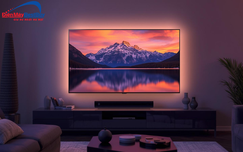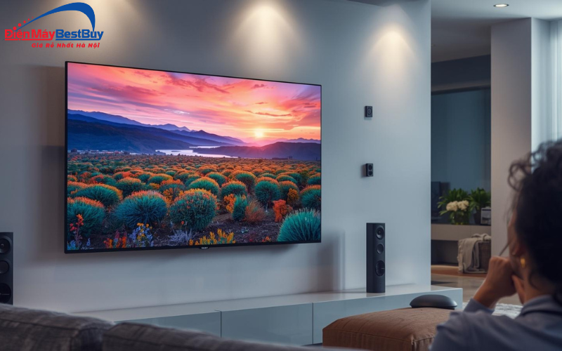 Về âm thanh, sản phẩm được trang bị công nghệ Dolby Atmos mang đến hiệu ứng âm thanh vòm sống động. AI Sound Pro tự động tối ưu âm thanh theo từng nội dung, giúp trải nghiệm nghe trở nên chân thực hơn. Đồng thời, Clear Voice Pro hỗ trợ tăng cường giọng nói, giúp lời thoại rõ ràng hơn trong các chương trình tin tức hoặc phim. Công nghệ AI Acoustic Tuning còn giúp điều chỉnh âm thanh phù hợp với không gian phòng, mang lại hiệu quả nghe tối ưu.