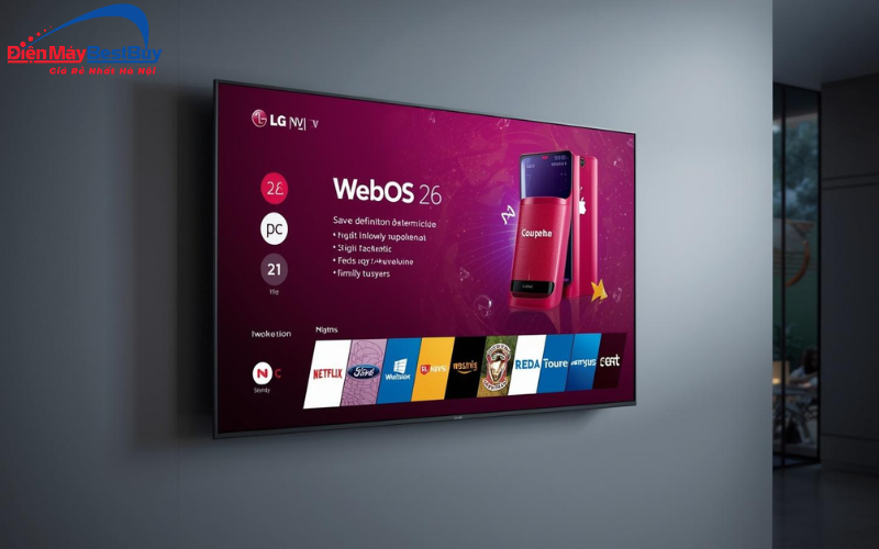 Tivi sử dụng hệ điều hành webOS 26 mới nhất với giao diện trực quan, dễ sử dụng và kho ứng dụng phong phú. Người dùng có thể dễ dàng truy cập các nền tảng giải trí như xem phim, nghe nhạc hay sử dụng các ứng dụng trực tuyến chỉ với vài thao tác đơn giản.