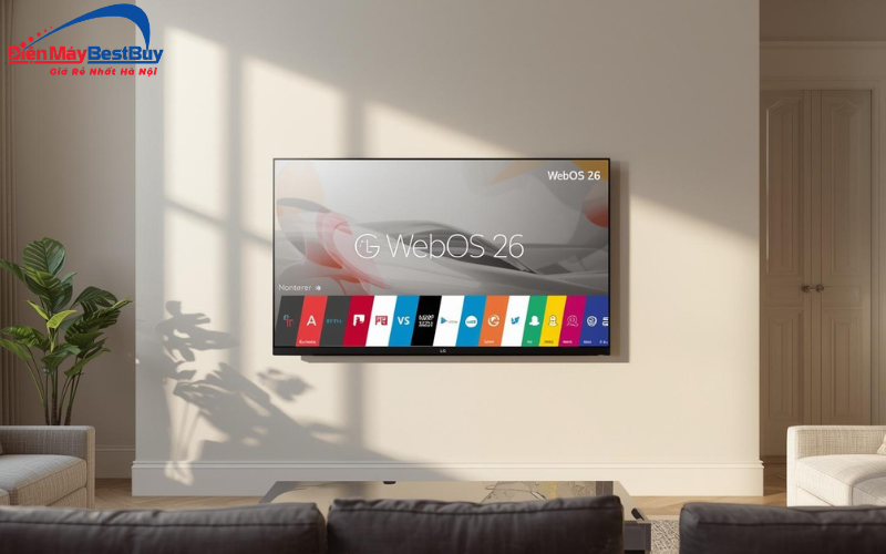 Tivi được trang bị webOS 26 với giao diện thân thiện, dễ sử dụng. Kho ứng dụng phong phú giúp người dùng dễ dàng truy cập các nội dung giải trí trực tuyến.