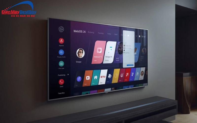 Tivi được trang bị webOS 26 với giao diện thân thiện, dễ sử dụng. Kho ứng dụng phong phú giúp người dùng truy cập nhanh các nền tảng giải trí trực tuyến.