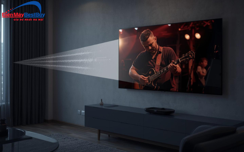 Tính năng AI Acoustic Tuning giúp điều chỉnh âm thanh phù hợp với không gian phòng, mang lại trải nghiệm nghe tối ưu cho từng vị trí.