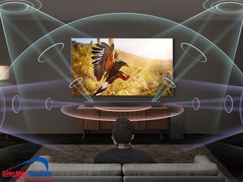 Tivi tích hợp Dolby Atmos và DTS Virtual:X, mang lại âm thanh vòm đa chiều sống động. Âm thanh được tái tạo chân thực, lan tỏa khắp không gian.