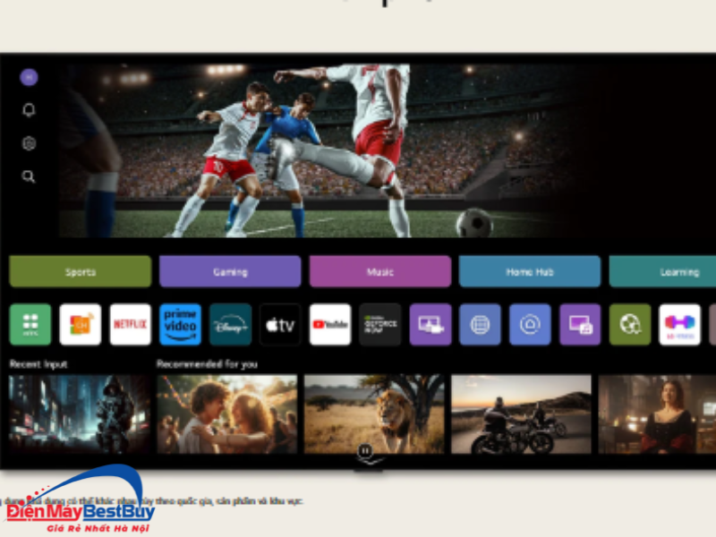 Hệ điều hành webOS mang đến kho ứng dụng phong phú từ LG Content Store, đáp ứng nhu cầu giải trí đa dạng. Ngoài ra, tivi còn tích hợp nhận dạng giọng nói, giao diện cá nhân hóa và chatbot AI, giúp người dùng dễ dàng điều khiển và tìm kiếm nội dung.