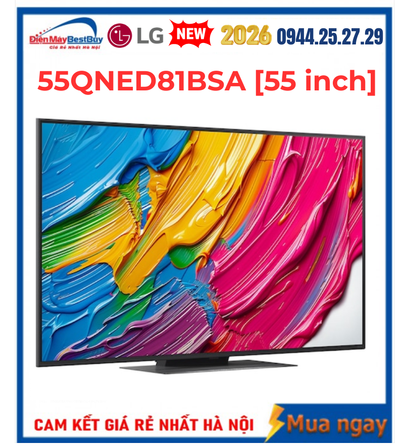 Tivi LG QNED AI 4K 55 inch 55QNED81BSA trang bị hàng loạt công nghệ xử lý hình ảnh - âm thanh hiện đại như Dynamic QNED Color, 4K Super Upscaling, Local Dimming, AI Sound Pro, WOW Orchestra,... Kết hợp với hệ thống tiện ích AI phong phú, mẫu tivi này là lựa chọn rất đáng cân nhắc cho người dùng muốn nâng cấp không gian giải trí gia đình theo hướng hiện đại, thông minh.