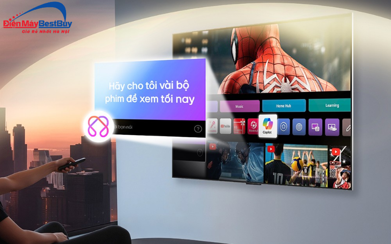 Tính năng ThinQ Voice Control cho phép điều khiển tivi bằng giọng nói, giúp thao tác nhanh chóng và tiện lợi hơn trong quá trình sử dụng.