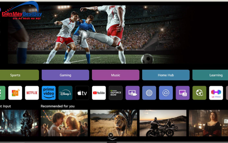Tivi sử dụng webOS với giao diện thân thiện, dễ sử dụng. Kho ứng dụng phong phú đáp ứng nhu cầu giải trí như xem phim, nghe nhạc, xem truyền hình trực tuyến.