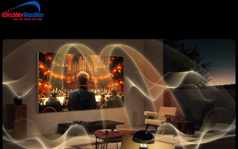 Tivi tích hợp Dolby Atmos, mang lại âm thanh vòm đa chiều sống động. Âm thanh lan tỏa tự nhiên, giúp nâng cao trải nghiệm xem phim và nghe nhạc.