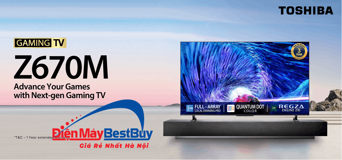 Phiên bản tivi thông minh màn hình khổng lồ cao cấp nhất mang tên tivi Toshiba 100 inch 100Z670SP đang thu hút sự chú ý nhờ khả năng hiển thị UHD 4K siêu sắc nét. Cùng Điện máy Bestbuy tìm hiểu chi tiết về siêu phẩm này để thấy rõ sức mạnh của kích thước 100 inch hoành tráng. Thiết bị hứa hẹn sẽ mang lại trải nghiệm giải trí vượt trội, kiến tạo một không gian rạp chiếu phim thực thụ ngay tại nhà.