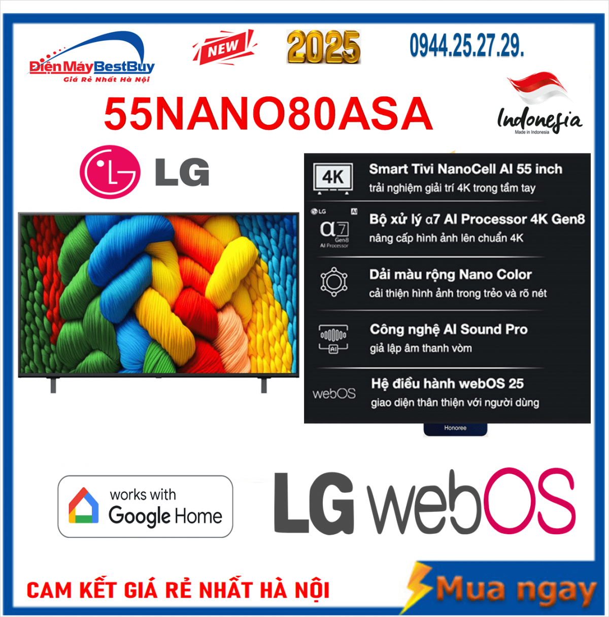 👉 Mua ngay Tivi LG 55NANO80ASA tại Điện Máy BestBuy để nhận giá ưu đãi, bảo hành chính hãng LG và giao hàng tận nơi toàn quốc !