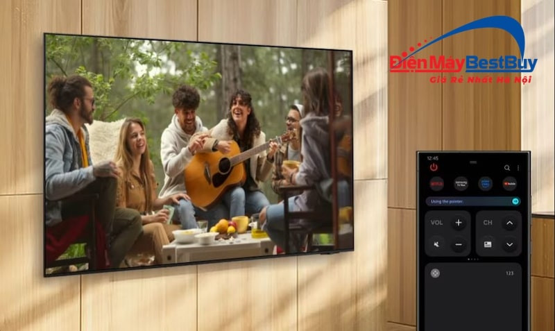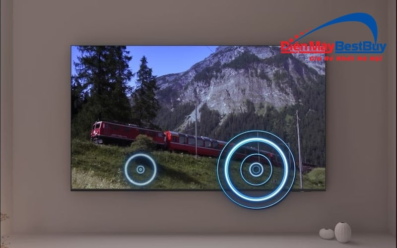 Công nghệ OTS Lite (Âm thanh chuyển động theo hình ảnh) tạo ra hiệu ứng âm thanh vòm ảo, mô phỏng âm thanh phát ra bám sát chuyển động trên màn hình, mang lại trải nghiệm xem thực tế hơn. Đặc biệt, Q-Symphony cho phép đồng bộ hóa loa tivi với loa thanh Samsung bên ngoài, mở rộng âm trường và tạo ra âm thanh bao trùm, mạnh mẽ.