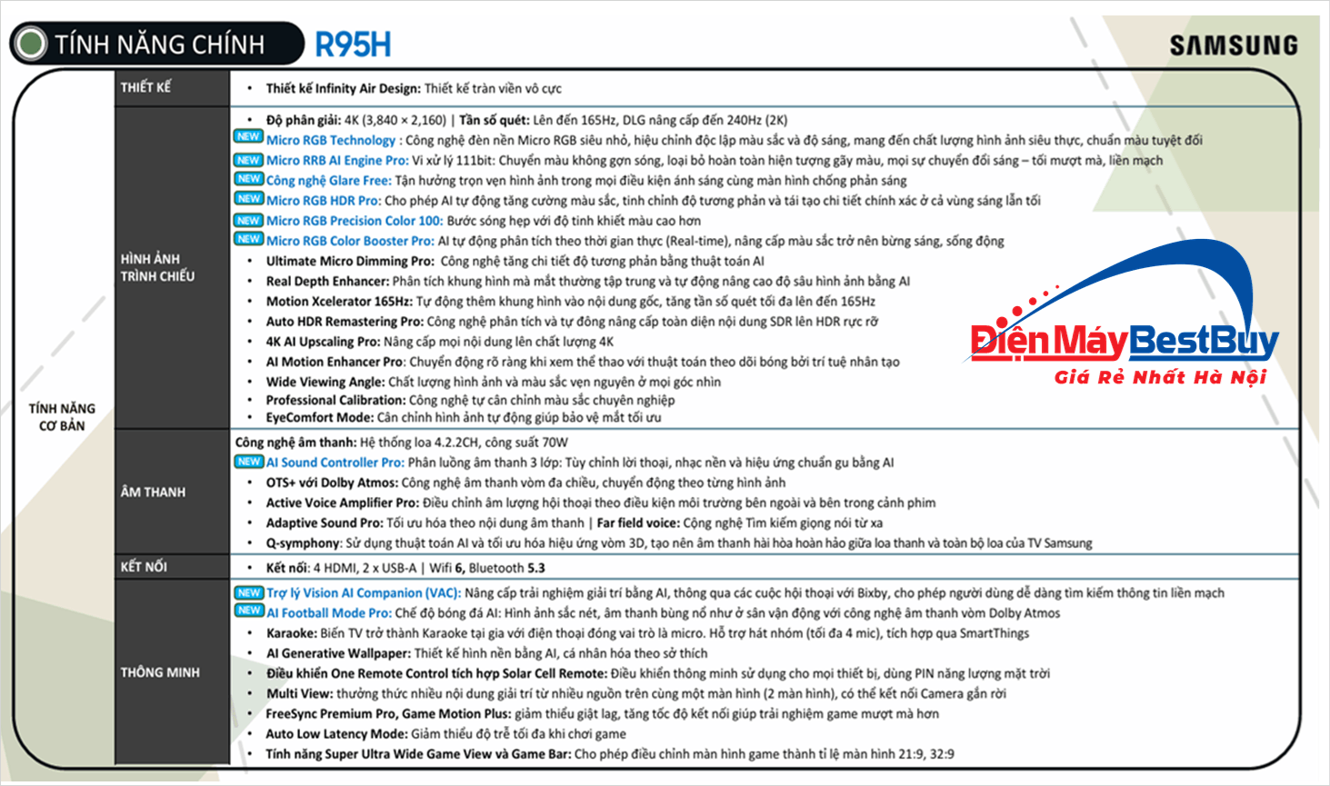 Có 3 Tivi Samsung Micro RGB R95H NEW 2026