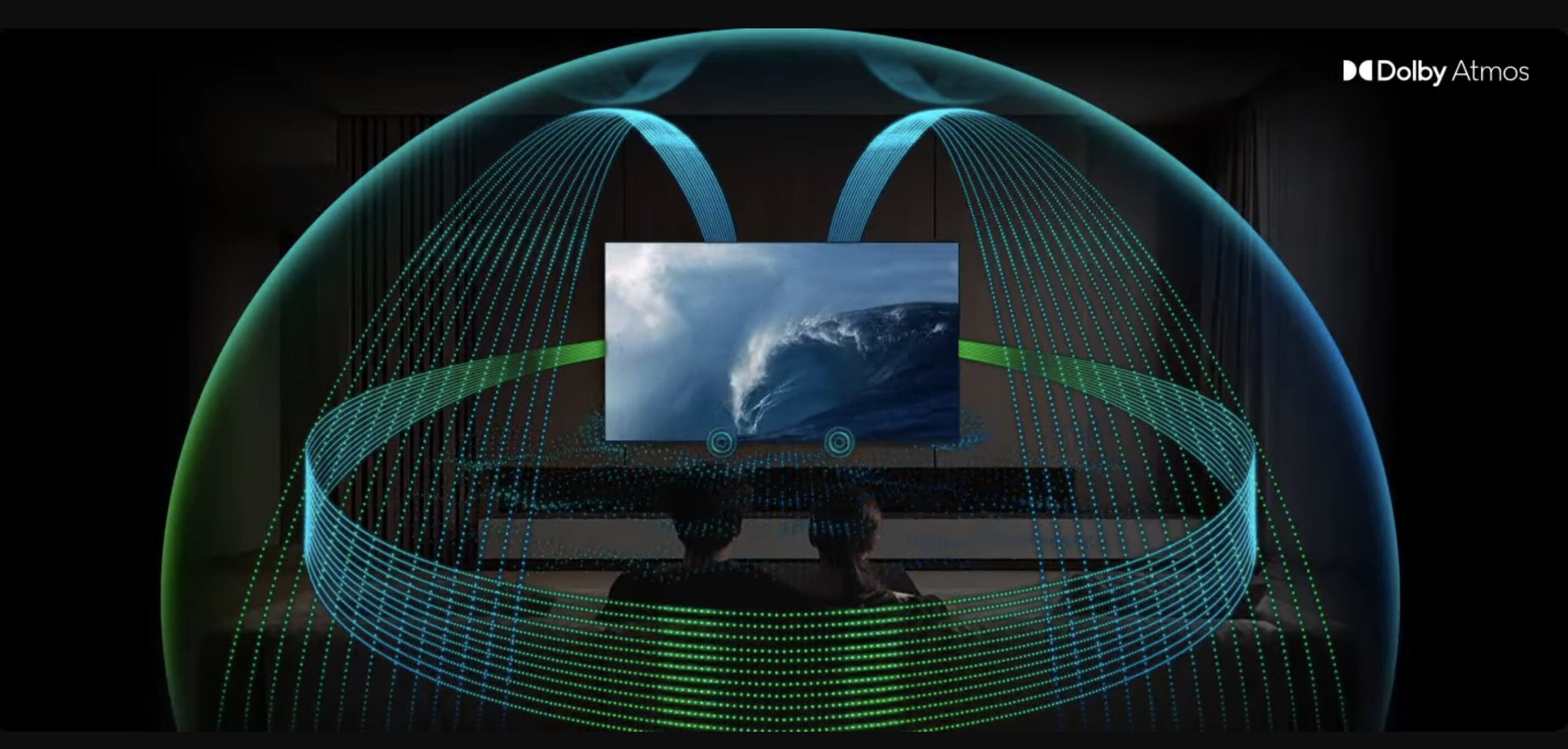 Hệ thống loa 4.2.2 kênh được tích hợp khéo léo bên trong kết hợp cùng công nghệ âm thanh vòm Dolby Atmos tạo ra không gian thính giác bao trùm. Công nghệ Object Tracking Sound (OTS+) giúp âm thanh di chuyển đồng bộ, khớp hoàn toàn với các hành động đang diễn ra trên màn hình.