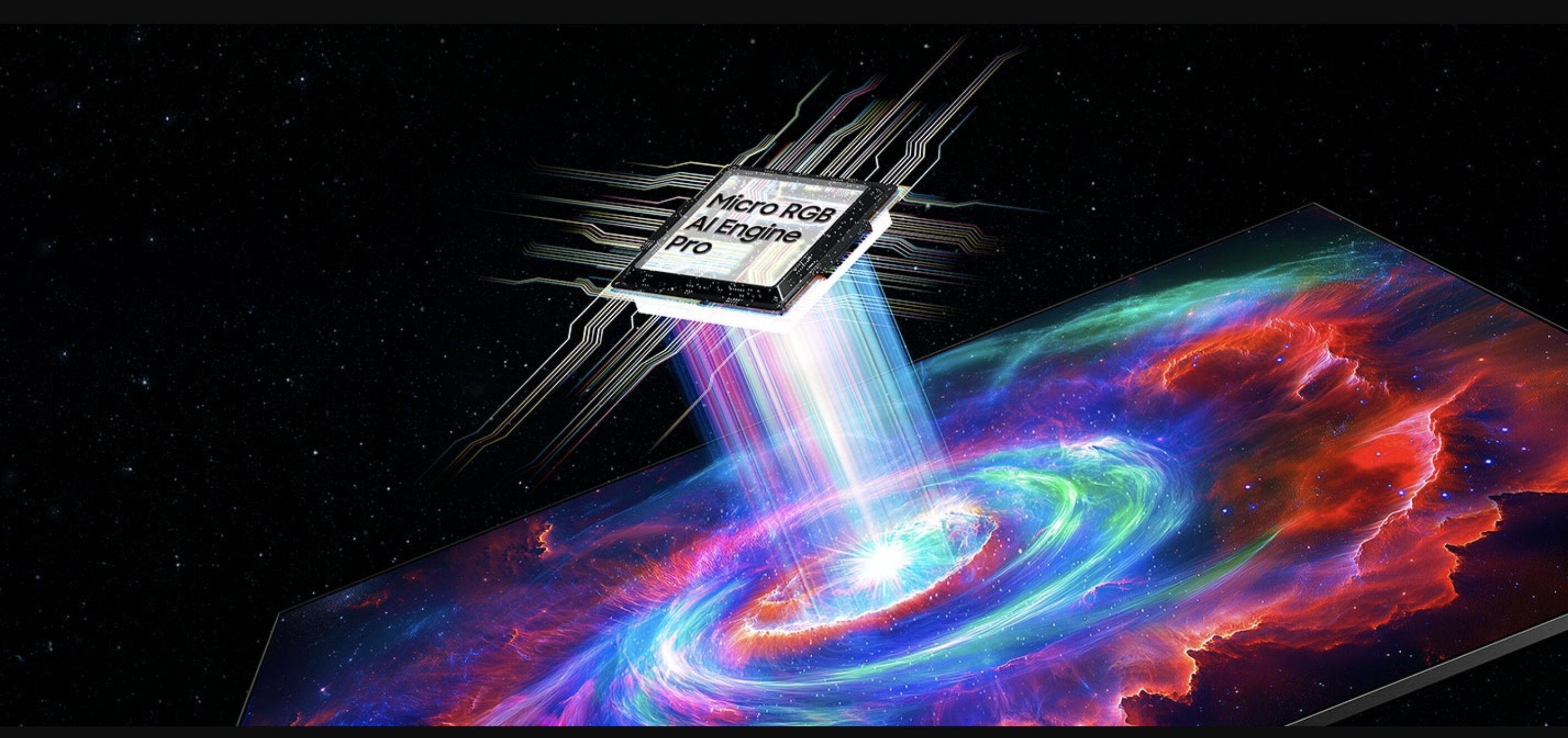 Chiếc Smart tivi Samsung sử dụng hệ thống đèn nền RGB siêu nhỏ (Micro-scale RGB LED) hoạt động hoàn toàn độc lập, giúp kiểm soát ánh sáng chuẩn xác đến từng vùng hiển thị nhỏ nhất.