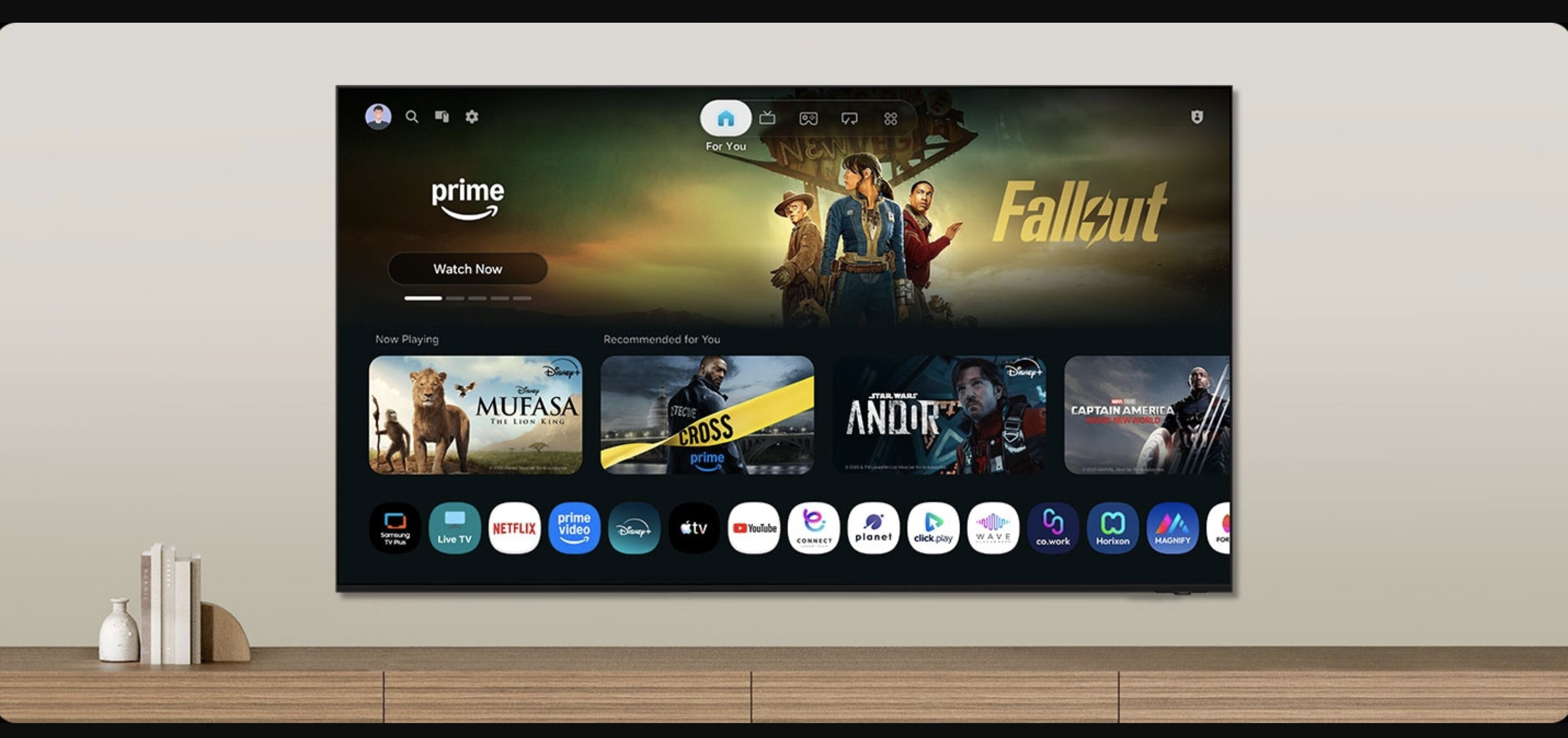 Thiết bị hỗ trợ tìm kiếm giọng nói bằng tiếng Việt qua trợ lý Bixby và tính năng Vision AI Companion. Tivi cũng đóng vai trò là một IoT Hub thực thụ, giúp quản lý thiết bị thông minh qua SmartThings, hỗ trợ chiếu màn hình AirPlay và tính năng Multi View chia nhỏ màn hình vô cùng tiện lợi.