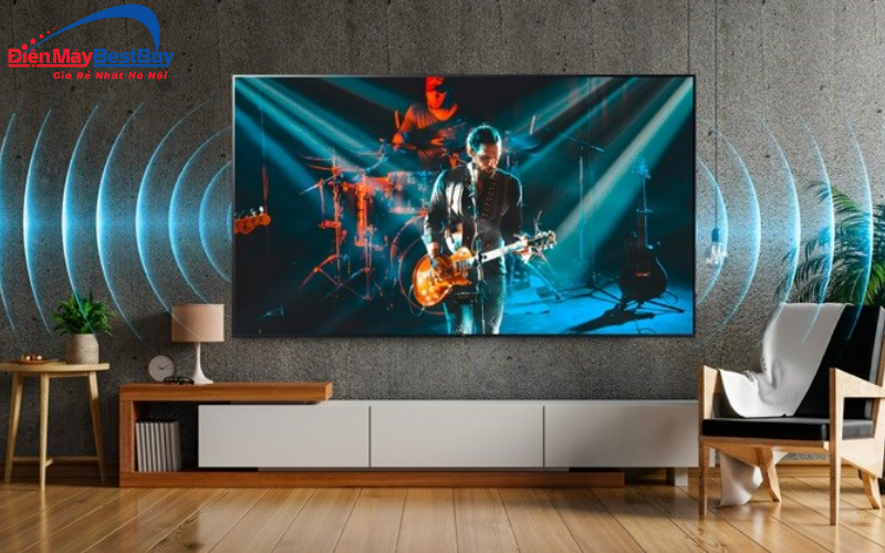 Về âm thanh, sản phẩm được tích hợp Object Tracking Sound, cho phép âm thanh di chuyển theo hình ảnh trên màn hình, tạo cảm giác sống động hơn. Công nghệ Dolby Atmos mang đến âm thanh vòm đa chiều, giúp người dùng cảm nhận rõ không gian âm thanh.