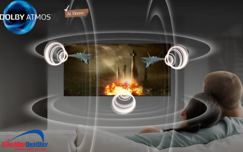 Về âm thanh, sản phẩm được trang bị Object Tracking Sound, cho phép âm thanh di chuyển theo hình ảnh trên màn hình, tạo cảm giác chân thực như đang diễn ra trước mắt. Công nghệ Dolby Atmos mang đến hiệu ứng âm thanh vòm đa chiều, giúp người dùng đắm chìm trong không gian giải trí.