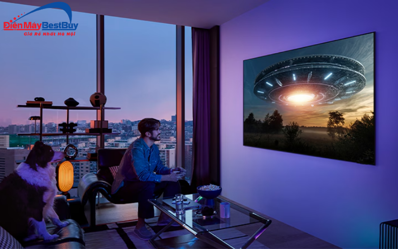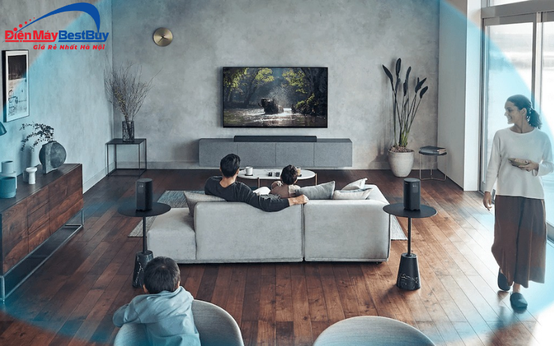 Về âm thanh, sản phẩm được trang bị công nghệ Object Tracking Sound, cho phép âm thanh di chuyển theo hình ảnh trên màn hình, mang lại cảm giác sống động như thật. Công nghệ Dolby Atmos tạo hiệu ứng âm thanh vòm đa chiều, giúp không gian giải trí trở nên chân thực hơn.