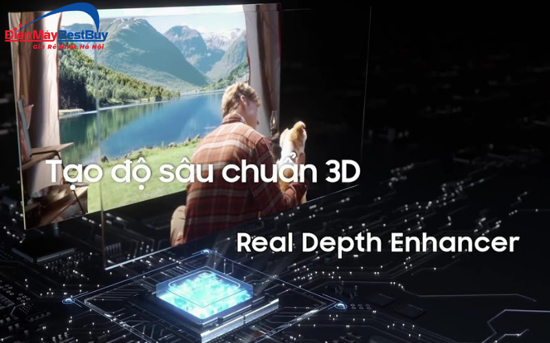 Công nghệ Real Depth Enhancer giúp tăng cường chiều sâu hình ảnh bằng cách làm nổi bật chủ thể chính, tạo cảm giác chân thực hơn khi xem. Tính năng chống chói Glare Free kết hợp với góc nhìn rộng giúp người dùng có thể theo dõi nội dung rõ ràng từ nhiều vị trí khác nhau mà không bị ảnh hưởng bởi ánh sáng môi trường.