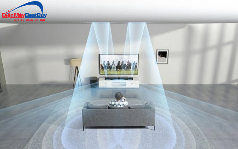 Về âm thanh, sản phẩm được trang bị Object Tracking Sound, cho phép âm thanh di chuyển theo hình ảnh trên màn hình, tạo hiệu ứng chân thực và sống động. Công nghệ Dolby Atmos mang đến âm thanh vòm đa chiều, giúp người dùng cảm nhận rõ từng chuyển động âm thanh.