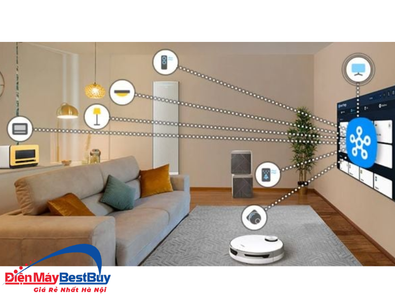Tivi hỗ trợ SmartThings, cho phép kết nối và điều khiển nhiều thiết bị thông minh trong gia đình. Người dùng có thể quản lý hệ sinh thái nhà thông minh ngay trên màn hình tivi một cách thuận tiện.