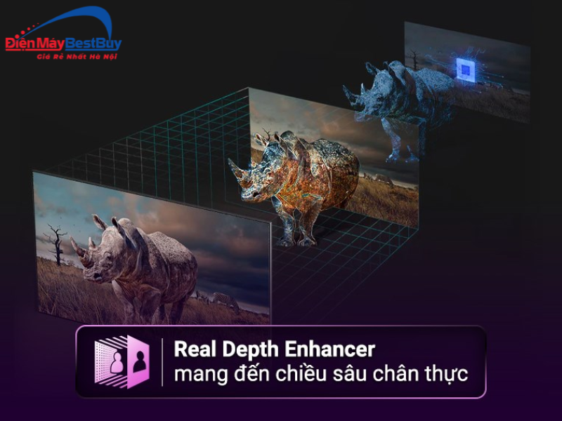 Real Depth Enhancer giúp tăng cường chiều sâu của hình ảnh bằng cách tối ưu độ tương phản giữa các lớp nội dung trên màn hình. Công nghệ này tạo cảm giác hình ảnh có chiều sâu tự nhiên, giúp khung hình trở nên chân thực hơn.