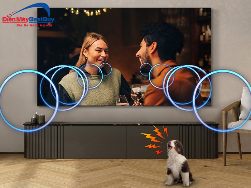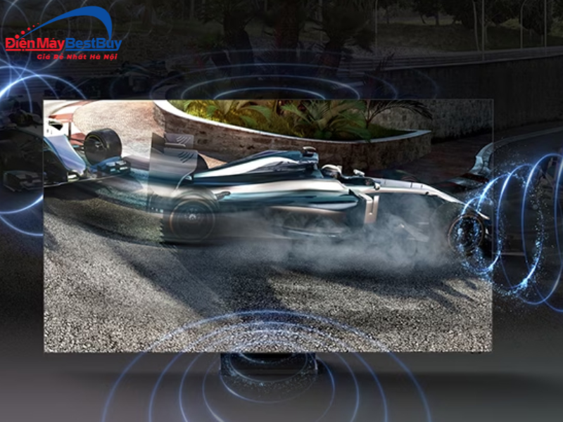 Tivi được trang bị Dolby Atmos cùng Object Tracking Sound (OTS) giúp âm thanh chuyển động theo hình ảnh trên màn hình. Nhờ đó, trải nghiệm âm thanh trở nên đa chiều và sống động hơn, mang lại cảm giác chân thực khi xem phim hoặc nghe nhạc.