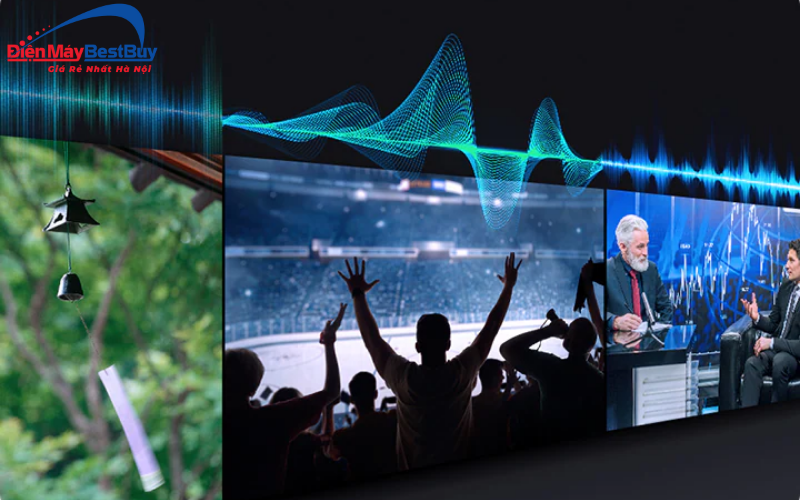 - Công nghệ Adaptive Sound: tự động phân tích nội dung đang phát để điều chỉnh âm thanh phù hợp. Khi xem phim, nghe nhạc, xem tin tức hay chương trình đối thoại, âm thanh sẽ được tối ưu để giọng nói rõ hơn hoặc hiệu ứng trở nên nổi bật hơn, giúp người dùng nghe dễ chịu và rõ ràng trong nhiều tình huống.