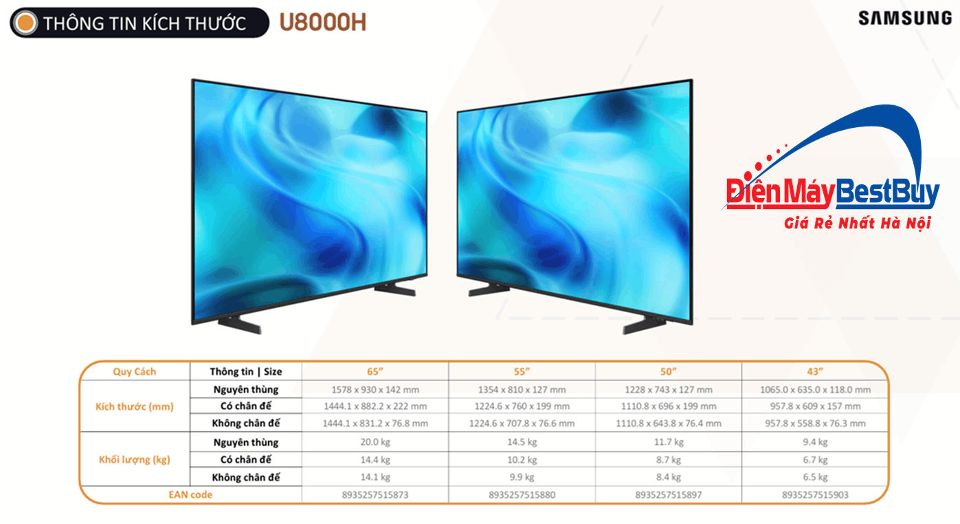 Kích thước Tivi Samsung UA65U8000H