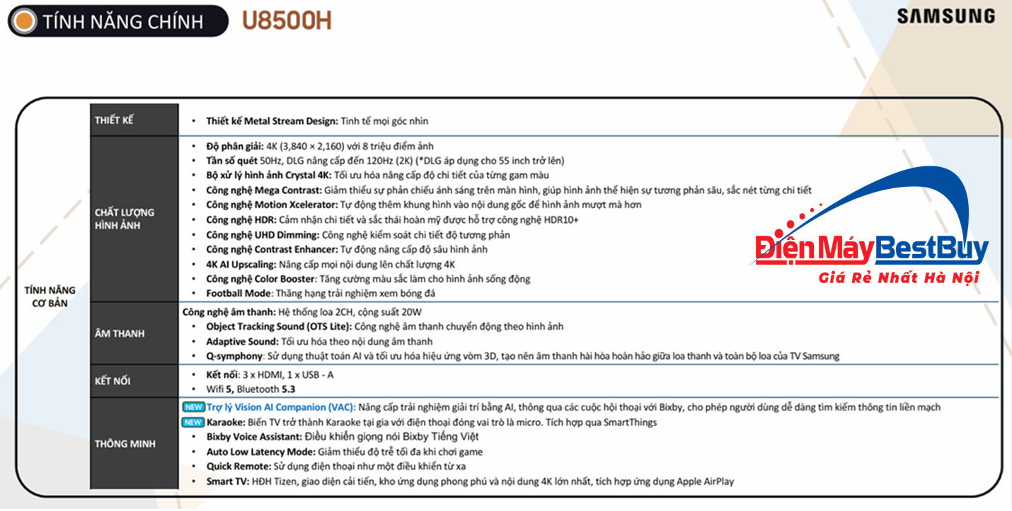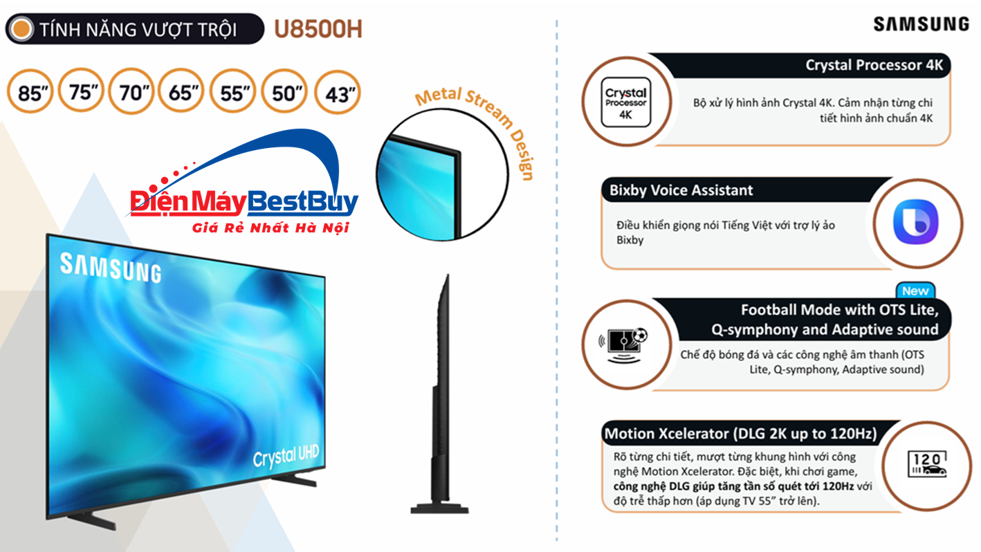 >>>>>Xem thêm: Smart Tivi Samsung UHD 4K 85 inch UA85U8500H Mới 2026