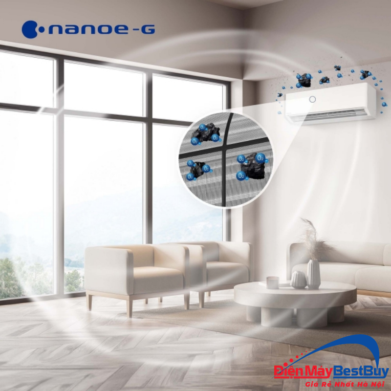 Công nghệ này tập trung vào việc loại bỏ bụi mịn, đặc biệt là các hạt bụi PM2.5 thường xuất hiện trong môi trường đô thị. Trong điều kiện phòng đóng kín, nanoe G giúp giảm lượng bụi lơ lửng, từ đó cải thiện chất lượng không khí hằng ngày. Với những gia đình sống tại khu vực có mật độ xe cộ cao hoặc gần trục đường lớn, đây là một tính năng thiết thực.