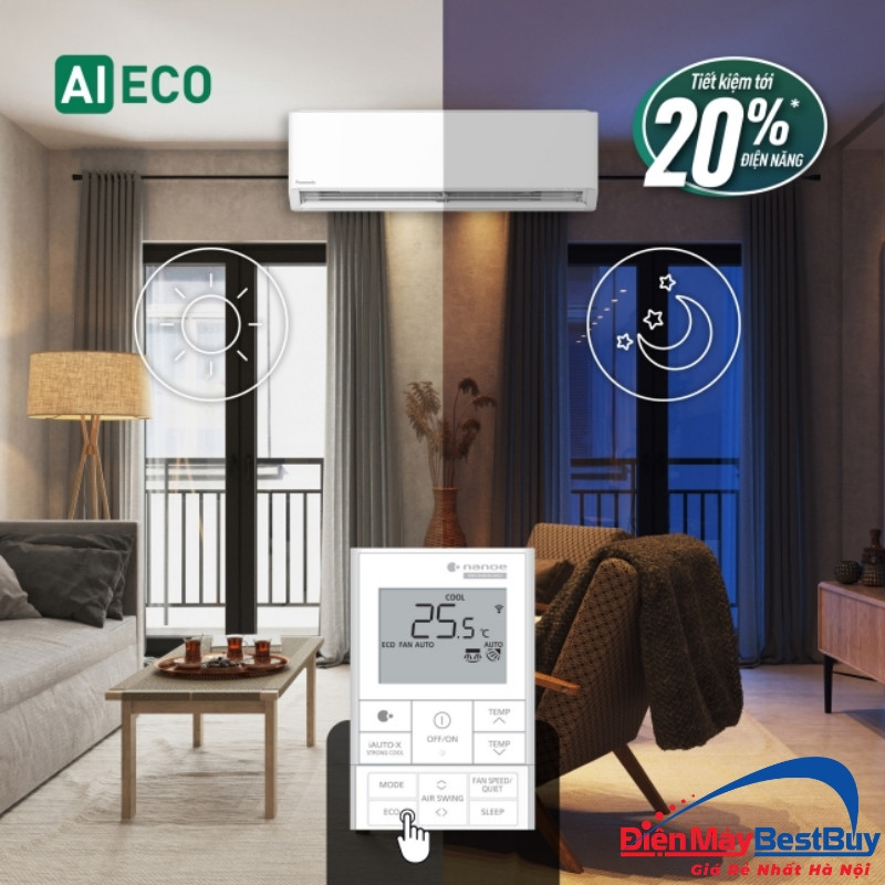 Hệ thống này có khả năng phân tích nhiệt độ phòng và điều chỉnh công suất làm lạnh sao cho cân bằng giữa sự thoải mái và mức tiêu thụ điện. Thay vì hoạt động liên tục ở mức cao, máy sẽ tự tối ưu theo điều kiện thực tế. Nếu sử dụng điều hòa trong thời gian dài (nhất là vào ban đêm hoặc trong phòng khách gia đình), tính năng này giúp giảm đáng kể điện năng tiêu thụ mà người dùng hầu như không nhận thấy sự thay đổi về độ mát.