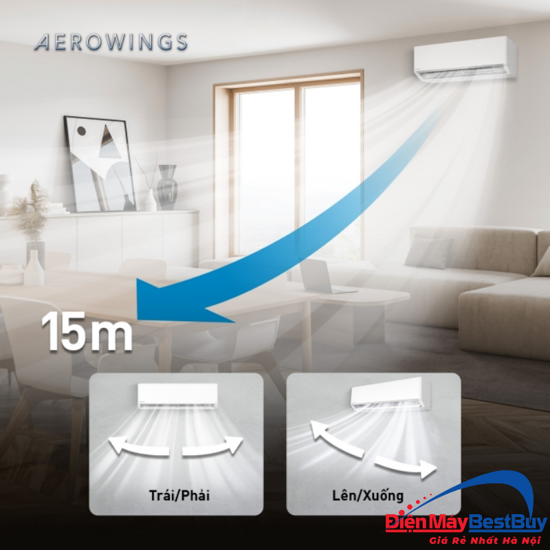 Thiết kế cánh đảo gió kép cho phép luồng khí được hướng lên trần nhà trước khi lan tỏa đều khắp phòng. Nhờ vậy, không khí lạnh không thổi trực tiếp vào người, giảm cảm giác buốt lạnh khi ngồi gần điều hòa. Đồng thời, nhiệt độ trong phòng được phân bổ đồng đều hơn, tránh tình trạng nơi quá lạnh, nơi còn nóng.