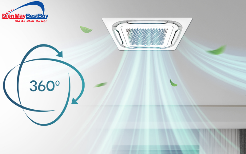 Khi không khí được phân phối theo hướng 360 độ, hơi lạnh không chỉ lan tỏa đều mà còn tạo cảm giác dễ chịu hơn, tránh hiện tượng chỗ quá lạnh, chỗ lại nóng. Đồng thời, việc hỗ trợ cấp khí tươi góp phần cải thiện môi trường làm việc, tạo cảm giác thông thoáng, giảm sự ngột ngạt thường gặp trong các phòng kín sử dụng điều hòa cả ngày.