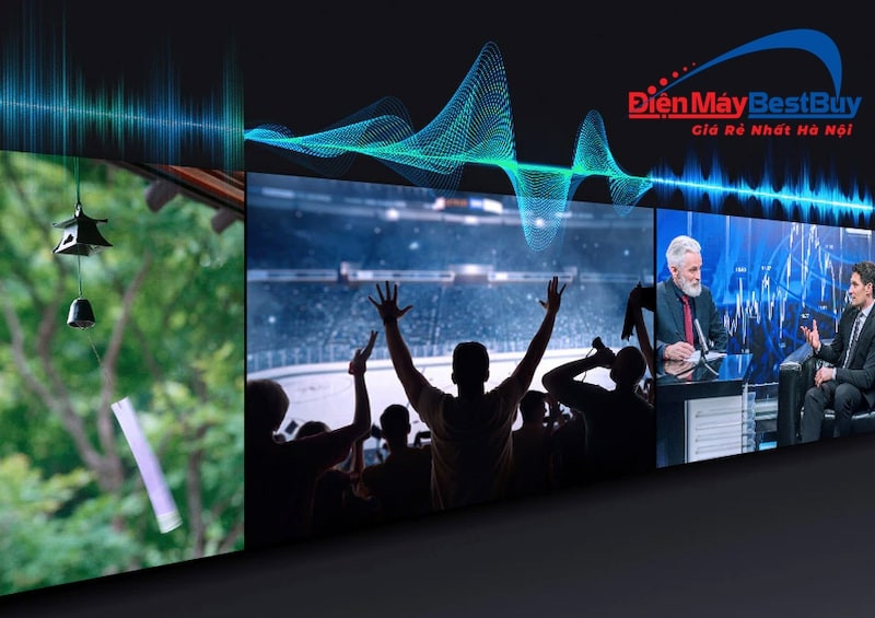 Công nghệ Q-Symphony Next (hoặc Q-Symphony) đồng bộ âm thanh của loa tivi với loa thanh Samsung, tạo nên một hệ thống âm thanh vòm hài hòa, lan tỏa 360° mạnh mẽ. AI Adaptive Sound tự động điều chỉnh âm thanh dựa trên nội dung và môi trường xung quanh, giúp bạn tận hưởng trọn vẹn chất lượng âm thanh rõ nét và cân bằng nhất.