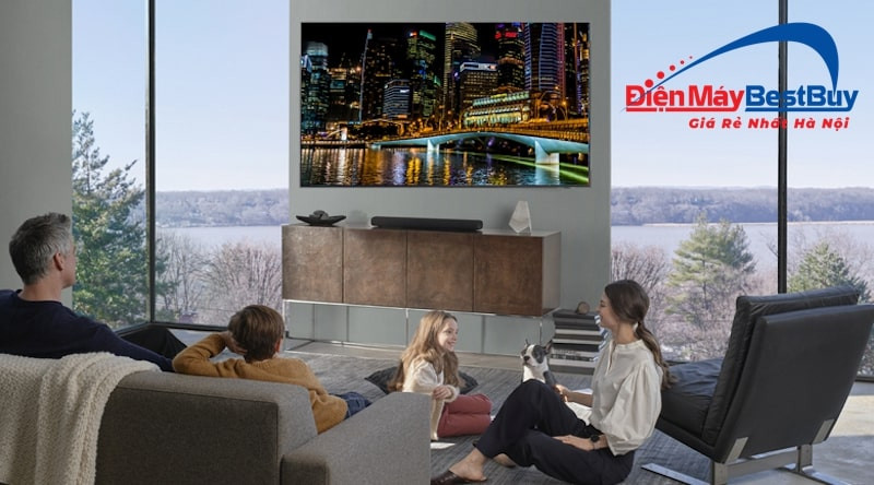 Adaptive Sound là tính năng cân bằng âm thanh thông minh, tự động điều chỉnh chất lượng âm thanh dựa trên nội dung đang xem (như lời thoại, nhạc nền), đảm bảo âm thanh luôn rõ ràng, cân bằng. Khi kết hợp với loa thanh Samsung tương thích qua Q-Symphony, âm trường được mở rộng, tạo nên trải nghiệm âm thanh đa chiều phong phú.