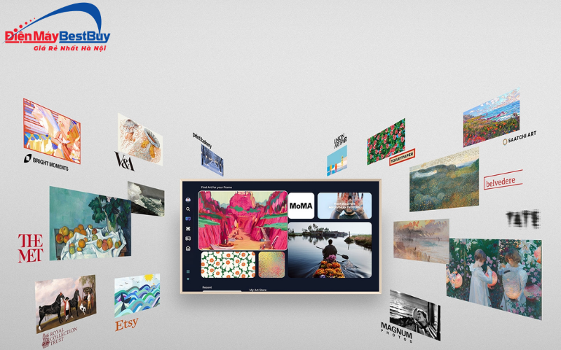 Với chế độ tranh Art Mode, người dùng có thể biến chiếc tivi thành một bức tranh kỹ thuật số sống động. Samsung Art Store cung cấp hàng trăm tác phẩm nghệ thuật nổi tiếng giúp người dùng thỏa sức lựa chọn.