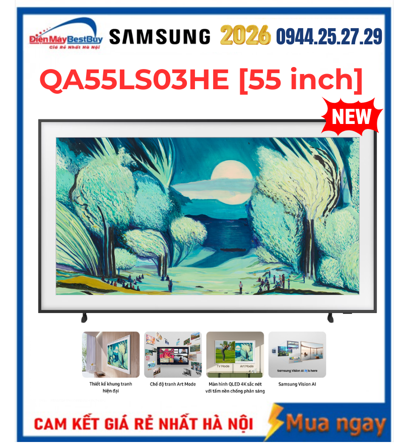 Điện máy BESTBUYS cung cấp tivi Samsung The Frame QLED 4K 55 inch QA55LS03HE chính hãng, tem mác đầy đủ, giá thành rẻ nhất thị trường, bảo hành 24 tháng. Đội ngũ tư vấn viên của BESTBUYS luôn sẵn sàng tư vấn, hỗ trợ khách hàng 24/7.