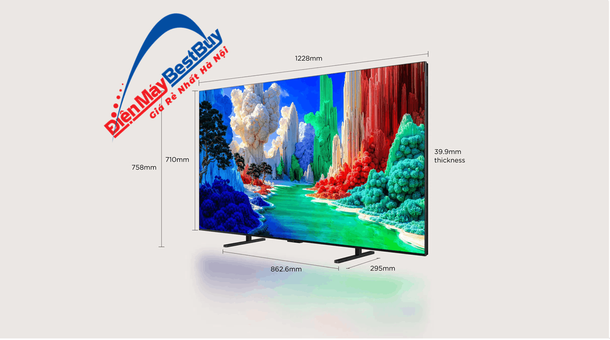 Với kích thước màn hình 55 inch tiêu chuẩn, sản phẩm đặc biệt lý tưởng để lắp đặt tại phòng khách căn hộ, phòng ngủ lớn hoặc các không gian giải trí gia đình có diện tích từ vừa đến rộng.