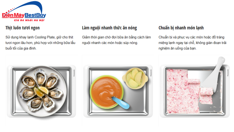 Điểm độc đáo của mẫu tủ lạnh này là khay lạnh toàn năng Cooling Plate có khả năng làm mát nguyên liệu, cấp đông nhanh hay chế biến món lạnh ngay tại chỗ.