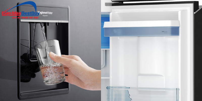 Thêm vào đó, tính năng lấy nước bên ngoài tiện lợi giúp người dùng dễ dàng thưởng thức những ly nước mát lạnh mà không cần mở cửa tủ, hạn chế thất thoát hơi lạnh. Hộp chứa nước được làm từ vật liệu kháng khuẩn, khử mùi và không chứa BPA, đảm bảo an toàn cho sức khỏe.
