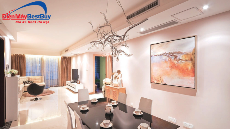 Bên cạnh đó, dòng máy này còn nổi bật với khả năng phân phối gió đều qua hệ thống ống gió, giúp luồng khí lan tỏa nhẹ nhàng, hạn chế thổi trực tiếp gây khó chịu.