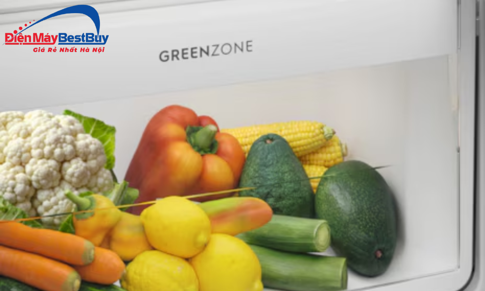 Ngăn rau quả GreenZone được thiết kế với khả năng kiểm soát độ ẩm tối ưu, giúp giữ tới 90% Vitamin C trong rau củ đến 7 ngày*. Nhờ đó, thực phẩm không chỉ tươi lâu hơn mà còn giữ được giá trị dinh dưỡng, mang lại bữa ăn lành mạnh cho gia đình.
