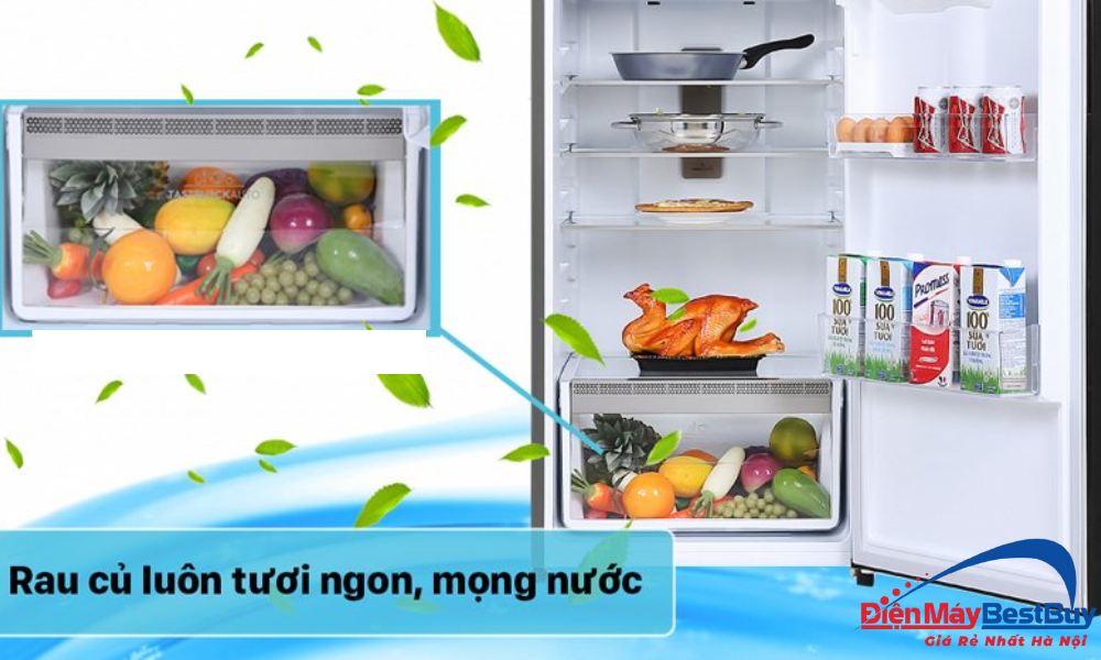 Không gian ngăn rộng rãi, dễ phân loại nhiều loại rau củ và trái cây, giúp người dùng sắp xếp gọn gàng và khoa học.