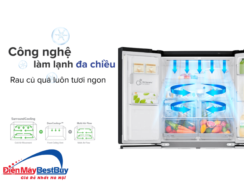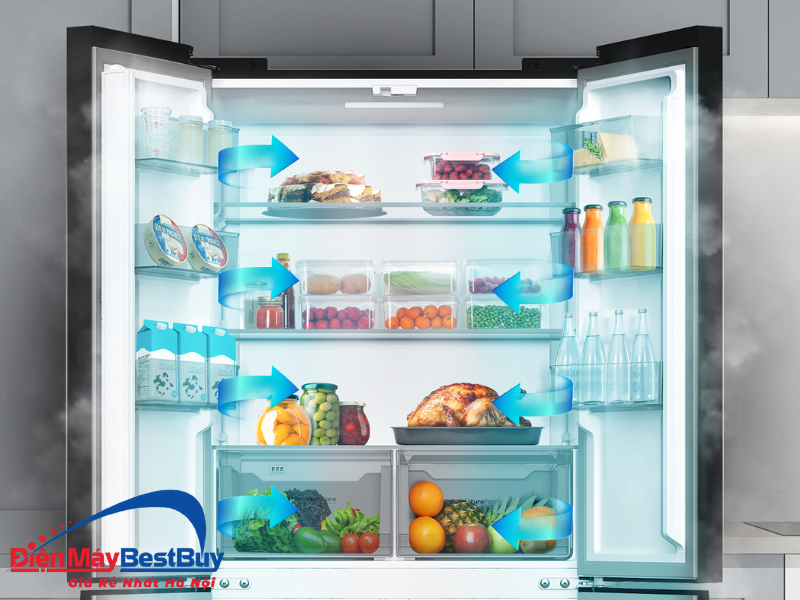 Công nghệ làm lạnh đồng đều giúp thực phẩm giữ được độ tươi ngon lâu hơn, đồng thời bảo toàn hàm lượng dinh dưỡng, đặc biệt là rau củ và thực phẩm tươi sống.
