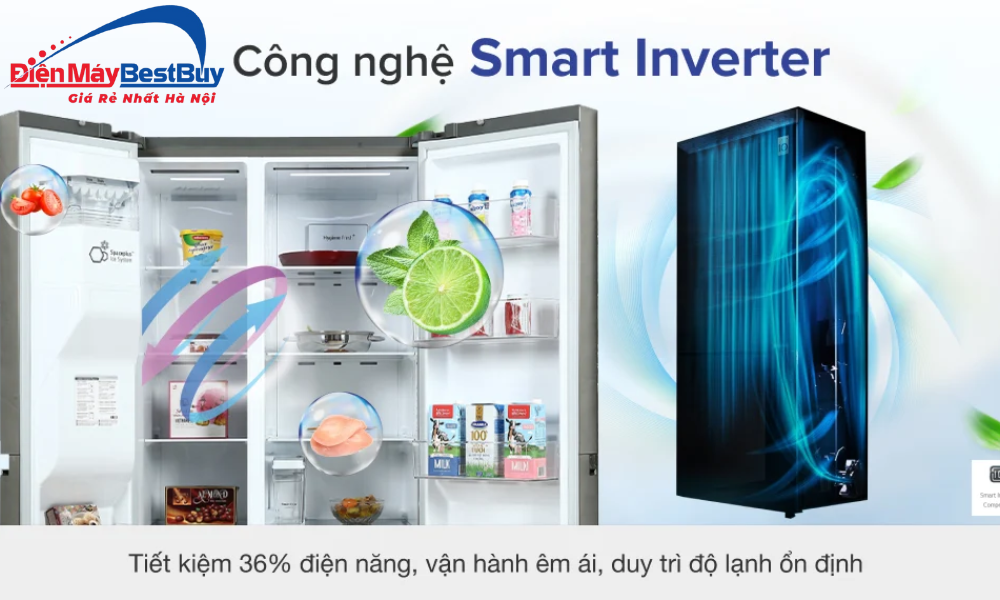 LG F51EG sử dụng máy nén Inverter hiện đại, có khả năng tự điều chỉnh công suất làm lạnh theo lượng thực phẩm bên trong và tần suất sử dụng. Nhờ đó, tủ lạnh vận hành êm ái, hạn chế tiếng ồn và tiết kiệm tối đa chi phí điện năng hàng tháng. Công nghệ này cũng giúp tăng tuổi thọ sản phẩm nhờ giảm ma sát cơ học.