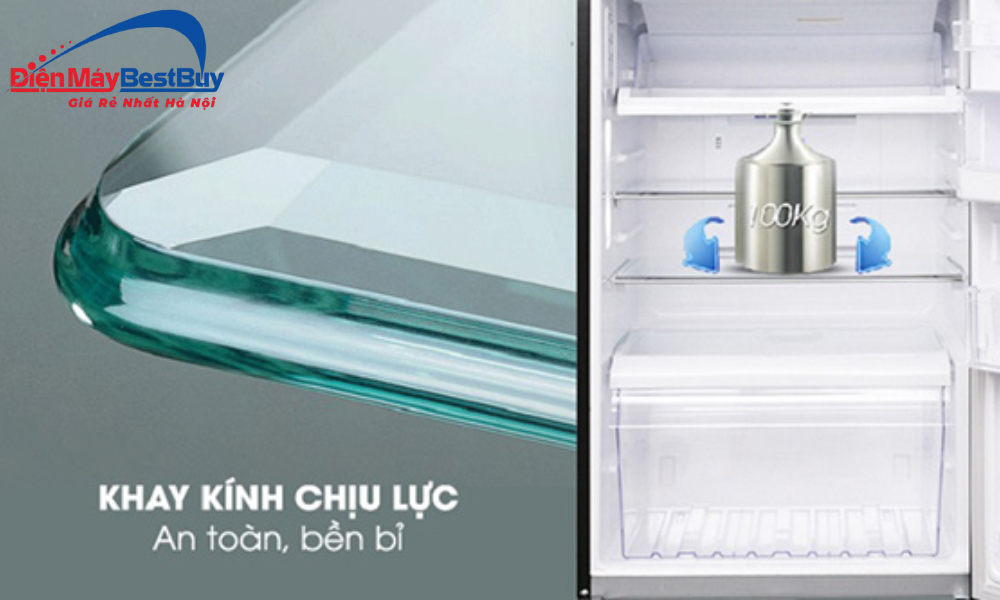 Bên trong tủ, hệ thống đèn LED chiếu sáng giúp người dùng dễ dàng quan sát thực phẩm mà không gây tỏa nhiệt như đèn truyền thống. Các khay kệ được làm từ kính chịu lực cao, có thể chịu được trọng lượng lớn và dễ dàng điều chỉnh theo nhu cầu lưu trữ. Thiết kế cửa mở rộng giúp tối ưu không gian thao tác và hạn chế thất thoát hơi lạnh ngay cả khi người dùng mở tủ nhiều lần trong ngày.